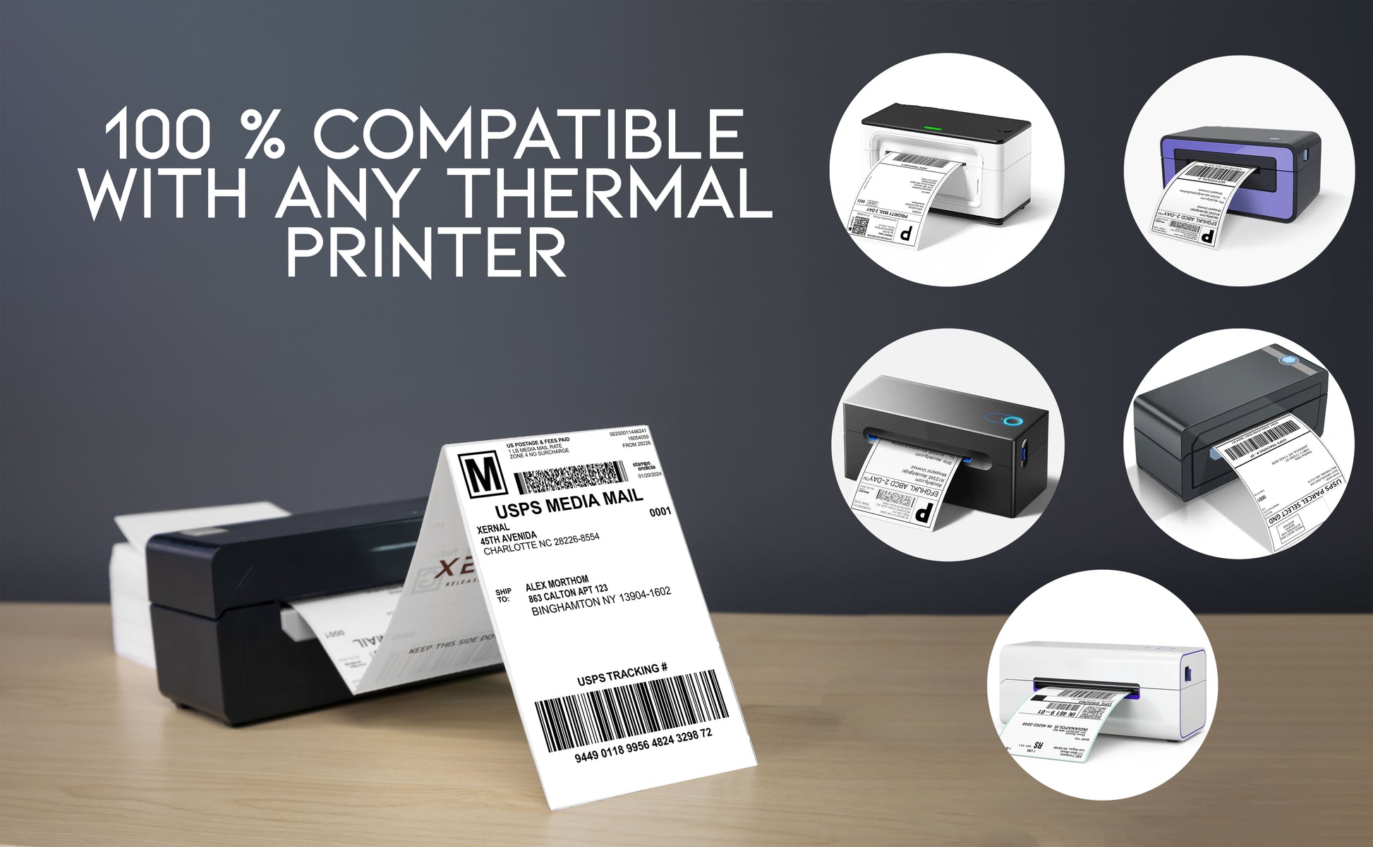 Compatibility: Rollo, Jadens, Asprink, Brother, Polono, Nelko, iDPRT, Jiose, Phomemo, K Comer, LabelRange, Offnova and Munbyn label printers, guaranteeing professional results for every shipment, resolving issues with shipping. USPS compatibility, ensuring seamless printing and adherence to USPS priority mail labels regulations, streamlining the shipping process and reducing errors.